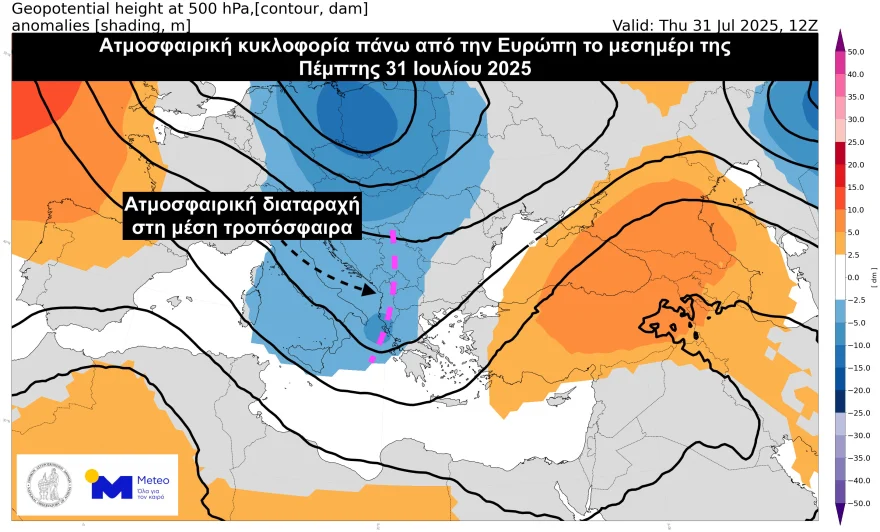 According to the latest forecast from the National Observatory of Athens (meteo.gr), the shift in weather is due to a mid-level atmospheric disturbance moving from Italy toward the southern Balkans and Greece.