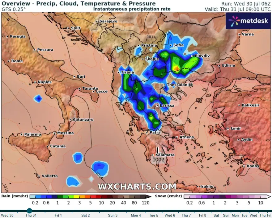 Thursday, July 31, 2025: Local Storms Expected Across Much of Greece