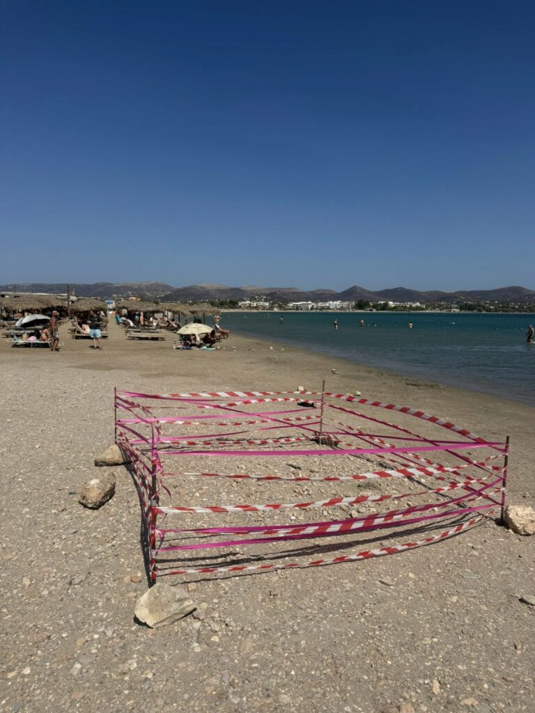 Locals immediately alerted ARCHELON, the sea turtle protection society, and tried to set up makeshift fences to protect the precious eggs that had come into the world under such harsh conditions, at a time when hope seemed to be fading.