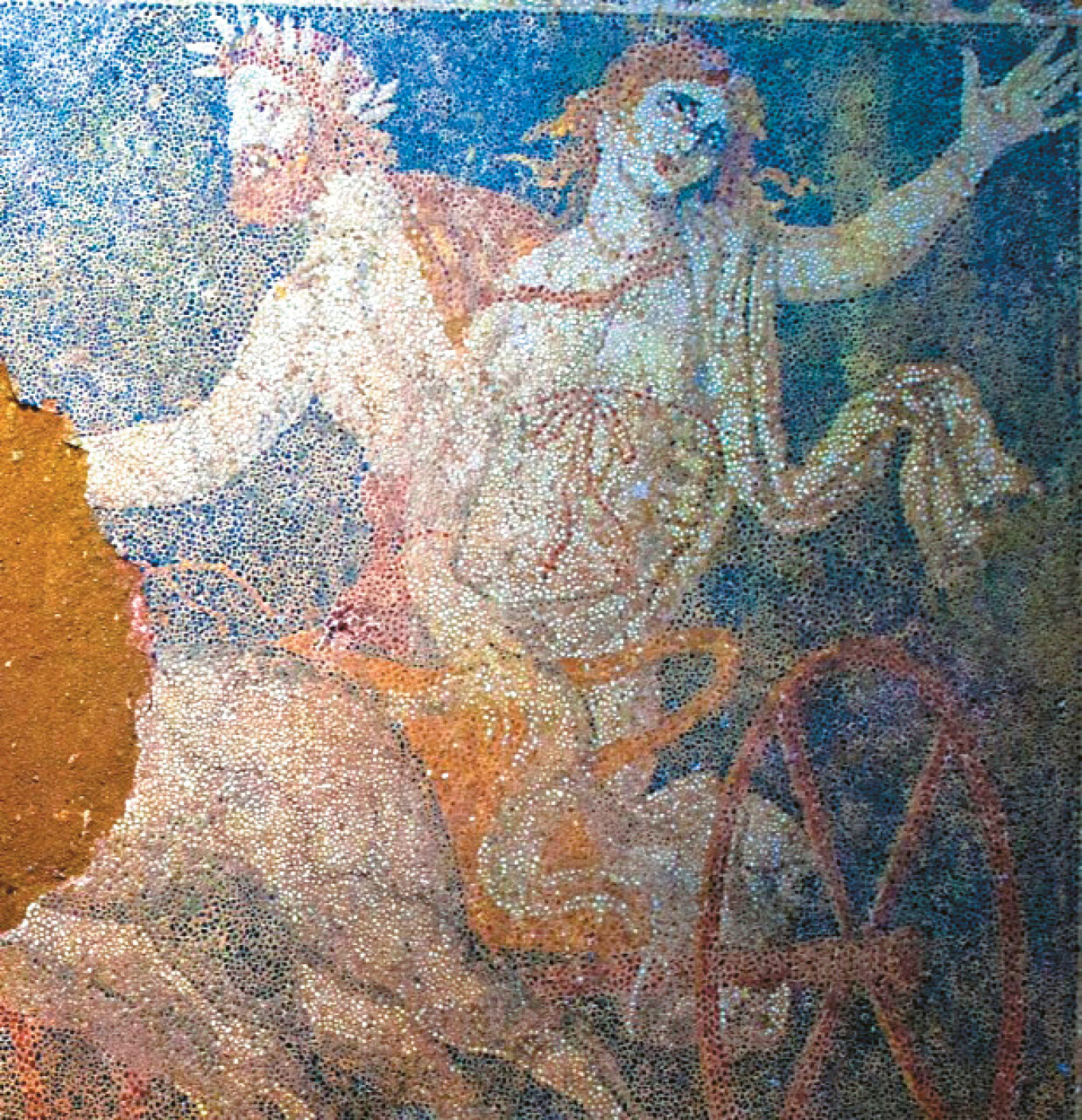 Much discussion has centered on the famous mosaic depicting the Abduction of Persephone by Pluto, with Hermes as psychopomp dominating the space. This is another clear indication of the tomb’s grandeur, comparable to the Tomb of Persephone in the palaces of Aegae.