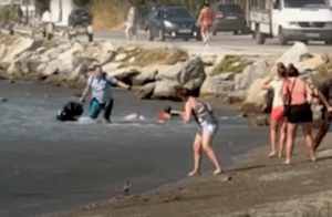 Video circulating online shows people trying to hold on to something to keep from falling, as the weak wind from the aircraft carried everything in its wake. In a typical frame, a tourist is seen running into the water to retrieve his valve that had ended up in the sea.