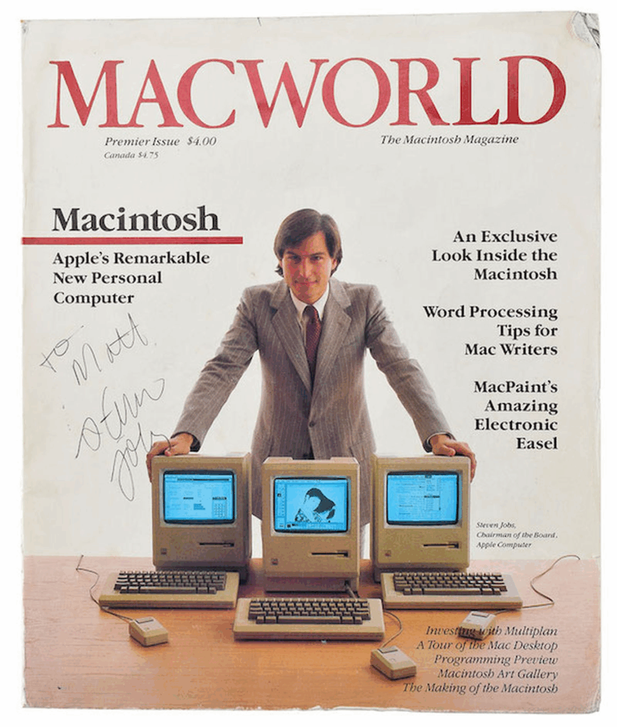 A rare “Rev. 0” Apple II with Sanyo monitor and unvented case – in the early 1977 models, Apple did not add a ventilation system, believing that the internal hardware would not significantly overheat. The introduction shot of the Macintosh 128K, released in 1984, was Apple’s first personal computer with a graphical user interface and mouse-so revolutionary that it immediately rendered everything before it obsolete.