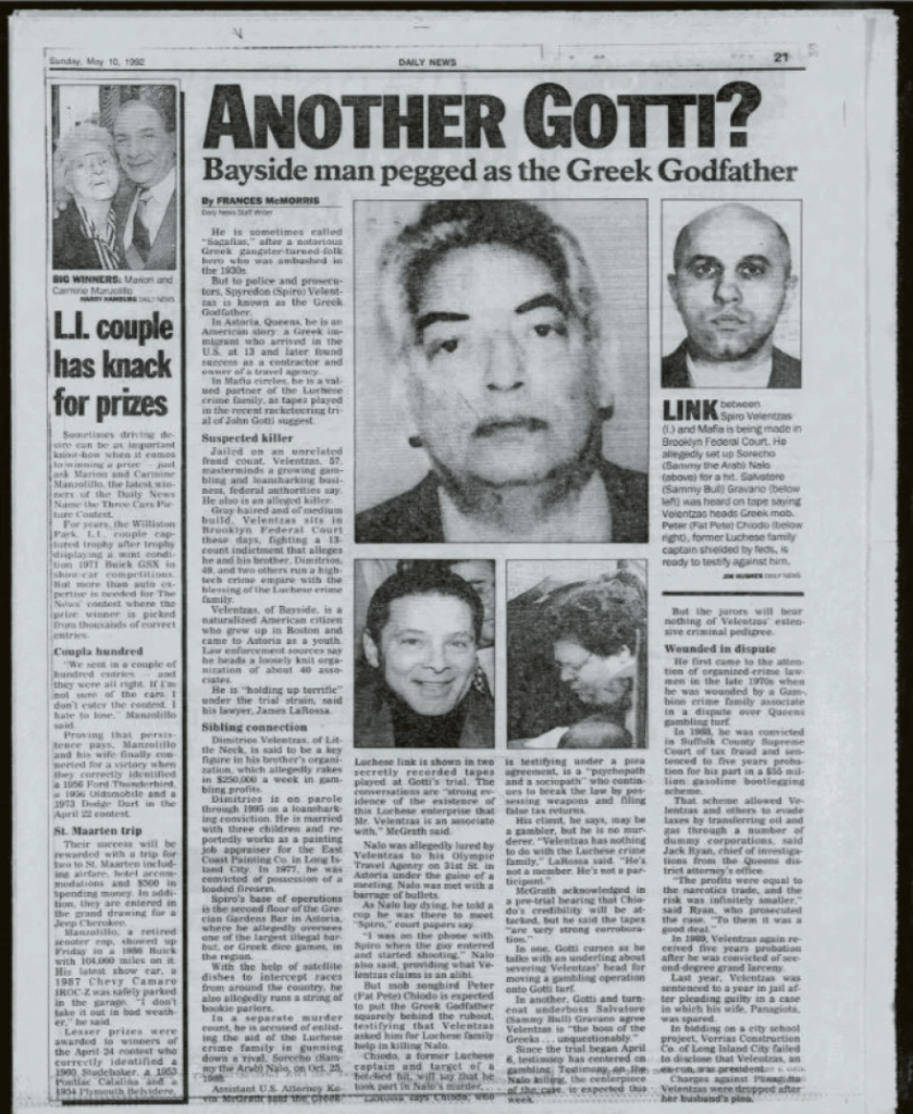 A few days later, he learned that the order for the attack had come from the Gambino family, seeking control of a card club in Queens that Velentzas had taken over. He underestimated the power of a very strong family.