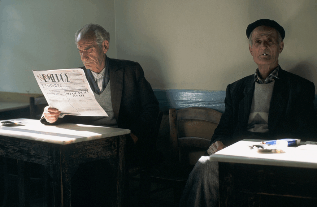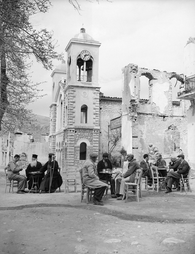 Traveling troupes would set up projection screens and invite the village to watch the early cinema of the time. Across generations, coffeehouses were spaces where men of local communities spent a significant portion of their time over a Greek coffee, a bottle of retsina, or a beer. They were meeting places, venues for commercial transactions, spaces for debate and political confrontation, centers for information, and forums for exchanging opinions on professional matters.