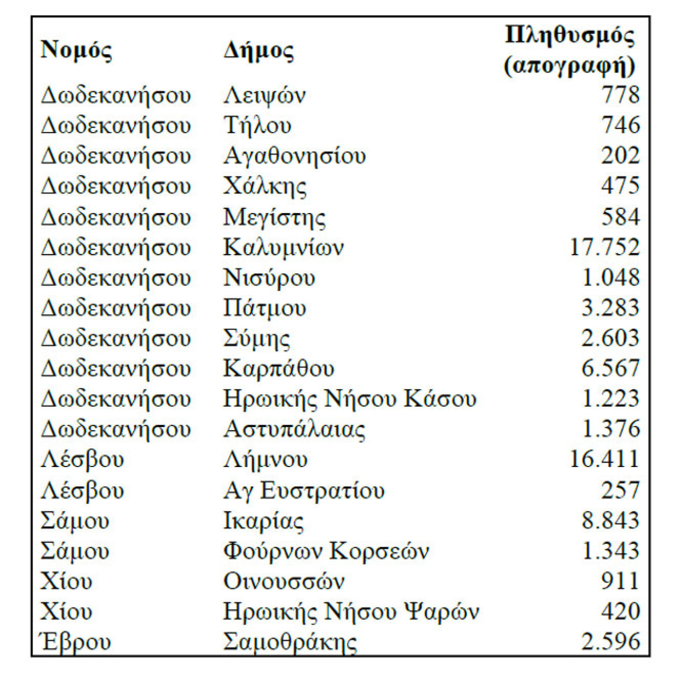 The measure, which is already in effect on five Aegean islands (Chios, Leros, Samos, Lesvos, Kos) that maintain reception facilities for refugee flows, applies to islands with populations up to 20,000 according to the 2021 census.