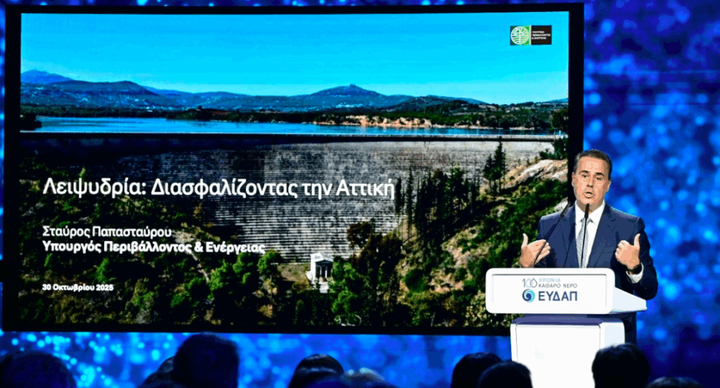 Environment and Energy Minister Stavros Papastavrou presented measures to secure water supply for Attica. “Water is the most vital public good, and its uninterrupted provision is a priority for the government,” he said. Attica has previously faced periods of drought, and currently, reservoir levels are low.