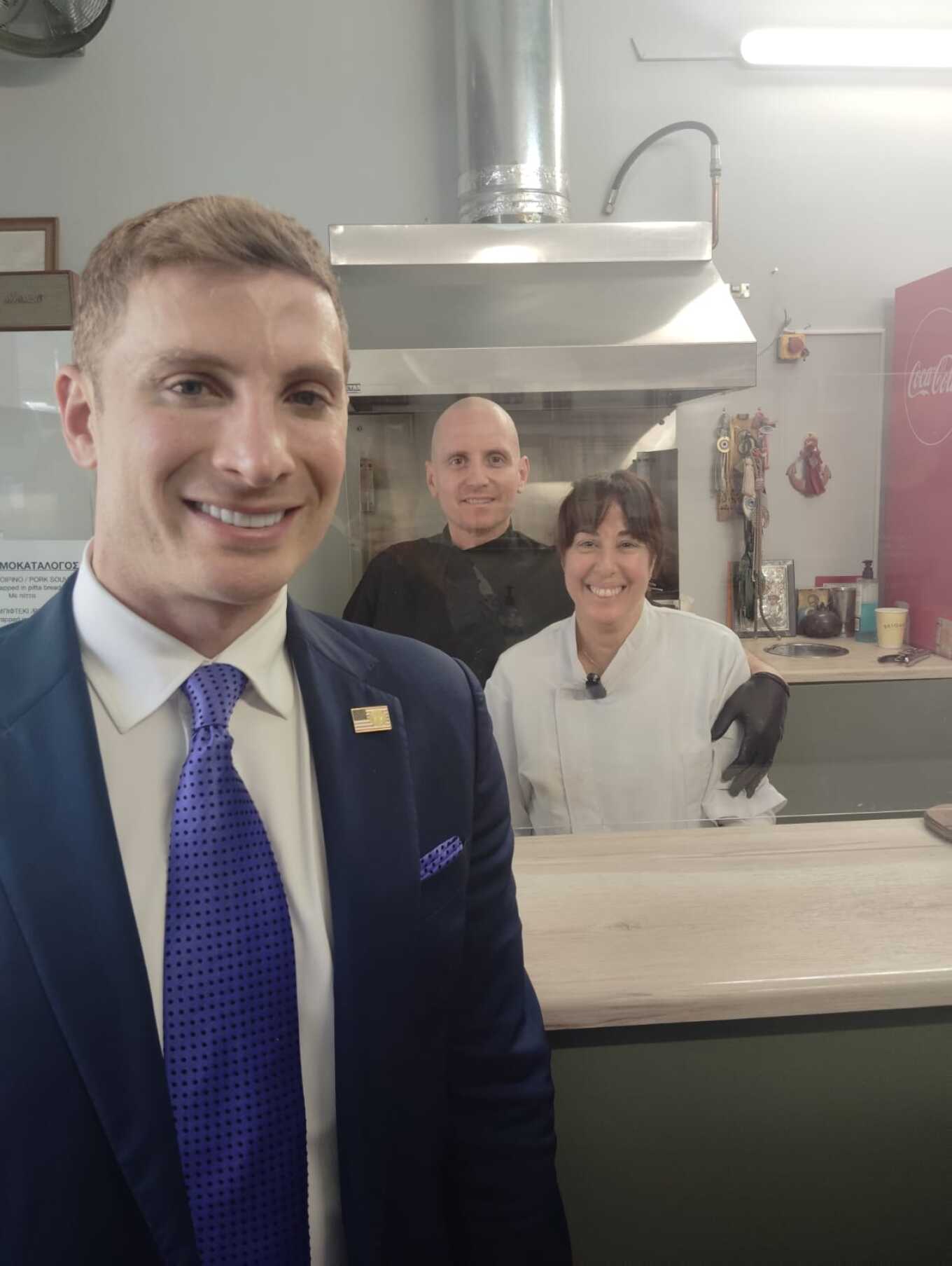 Helberg, who advises Donald Trump on energy matters, visited a souvlaki place on Mitropoleos, where he was recognized and employees asked to take a photo with him.