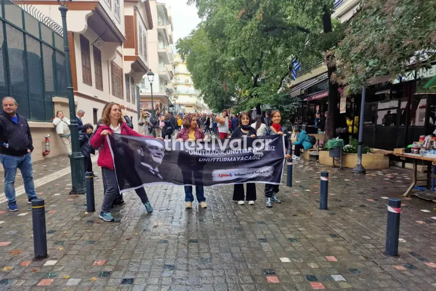 Crowds gathered at the Turkish Consulate, which operates in the building where Atatürk was born. There, the traditional memorial ceremony took place, and many attendees left flowers at the entrance as a tribute.