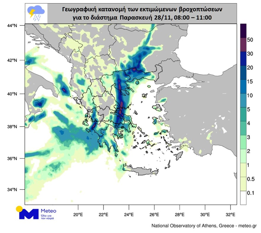 - On Thursday, heavy rains and storms hit the Ionian Islands, Epirus, Western Peloponnese, Eastern Macedonia, Thrace, and northern regions.