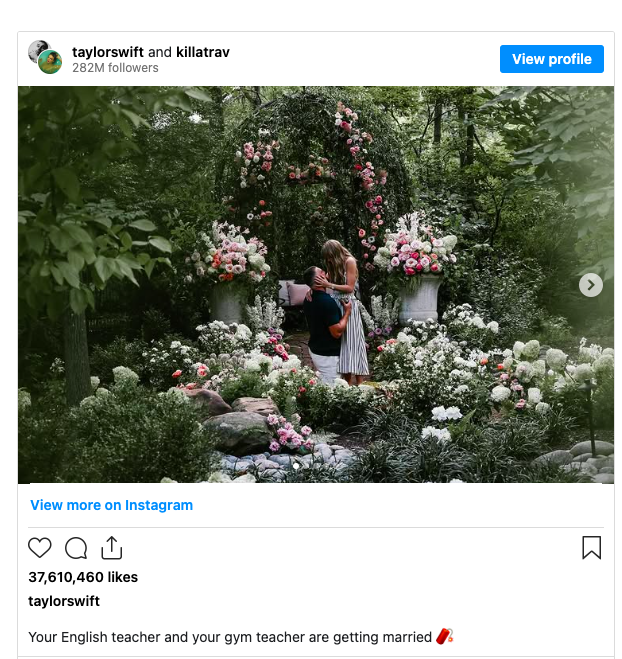 “Your English teacher and your gym coach are getting married,” the singer wrote in the caption of the post.