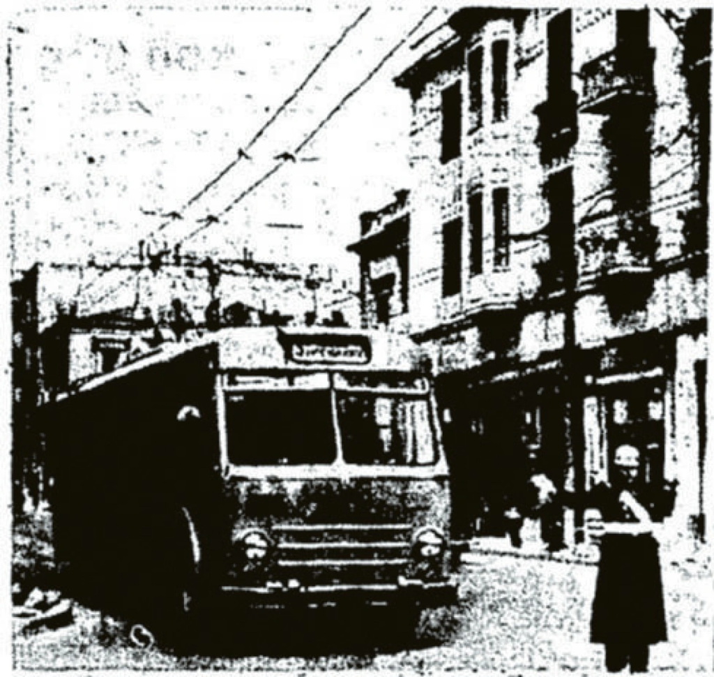 Back then, trolleybuses arrived painted green from the factory. Only after the war did the operating company repaint them yellow-orange, so they would match the city’s trams and buses.