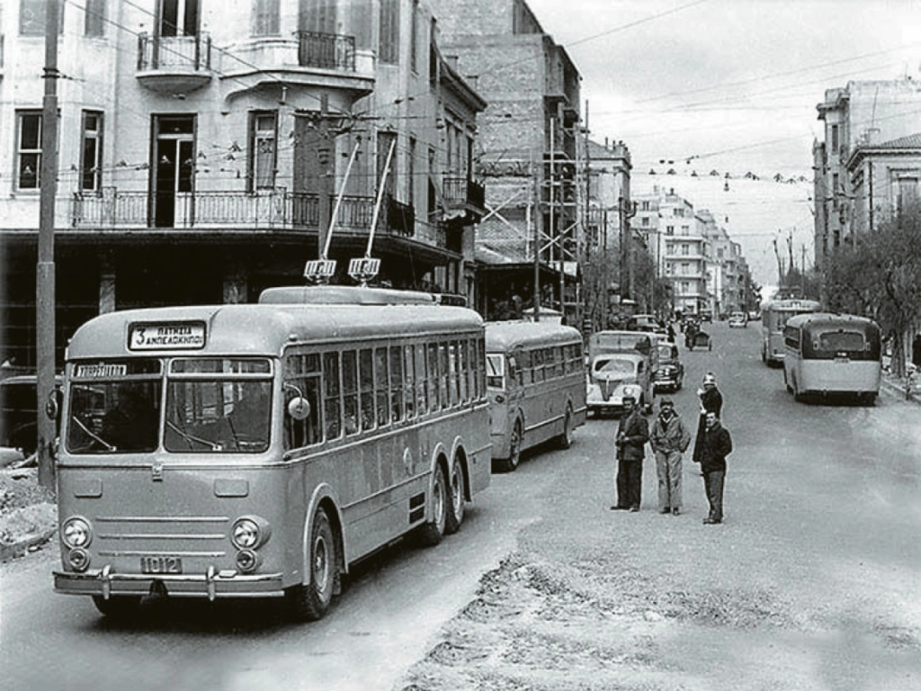The first Athenian trolley route opened on 27 December 1953, replacing the tram line between Patissia and Ampelokipoi. Many Athenians were slow to accept them, continuing to call them “trams” and referring to drivers as “trambagerides” long after the tram system was gone.