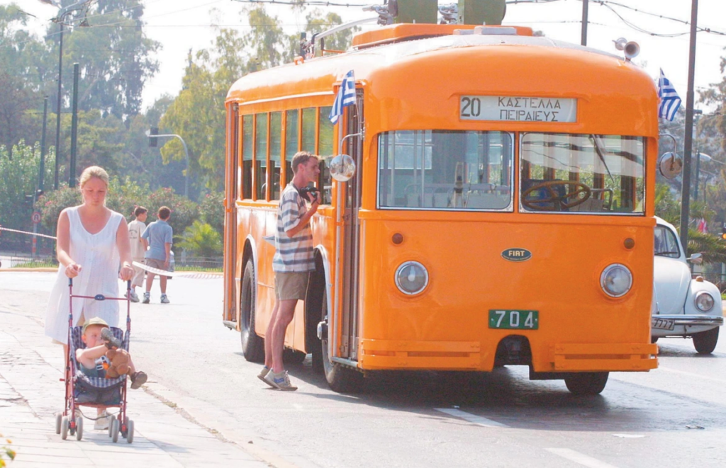 Greece’s first trolleybus ran in 1948 between Piraeus and Kastella—a Fiat model that survives today as a historic relic.