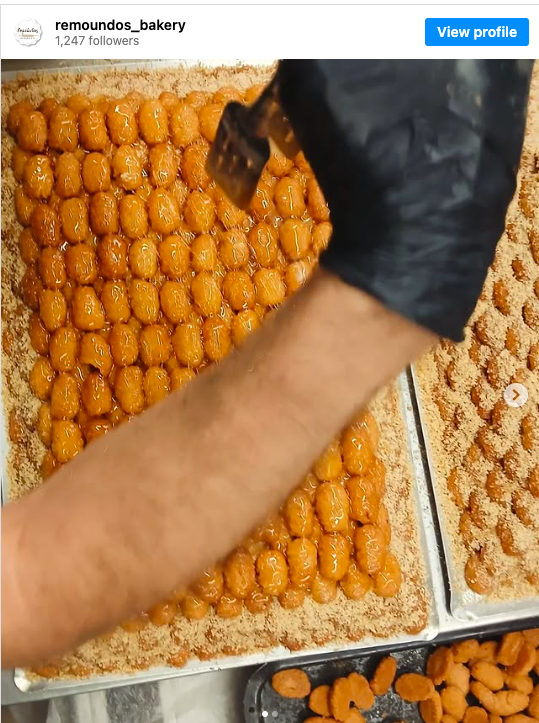 Small, cinnamon and clove-scented cookies richly soaked in honey but retaining a crispy exterior, topped with chopped walnuts.