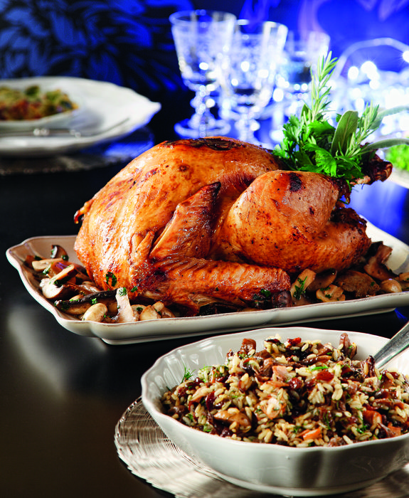 - Turkey stuffed with mushrooms, rice, raisins, and ham