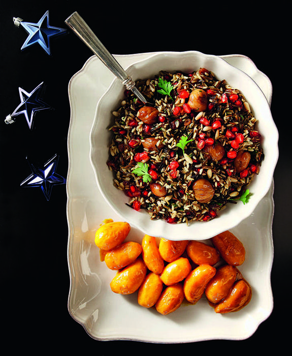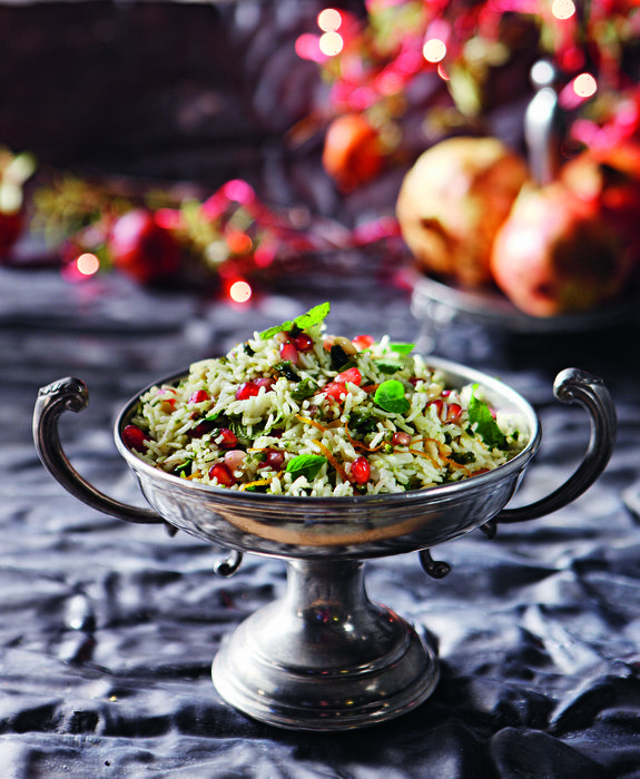 - Aromatic pilaf with saffron, pomegranate, and nuts
