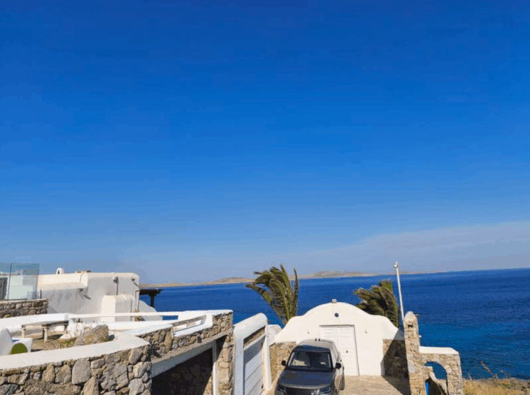 The second auction, if it proceeds, involves a two-story villa located in the Diakoftis or Aleomantra area, west of Mykonos Town, about 4.5 km from the town and 5.5 km from the airport.