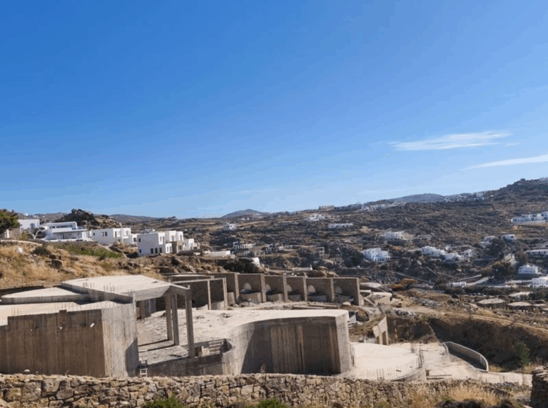 The first auction, if it proceeds, concerns a buildable plot located in the Mykonos Municipal Community, in the “Vigles” area outside the town limits and not included in the city’s approved zoning plan. The plot covers 10,736 square meters and lies about 106 meters from the sea, near the well-known Super Paradise beach. It came into the possession of the debtor in September 2018.
