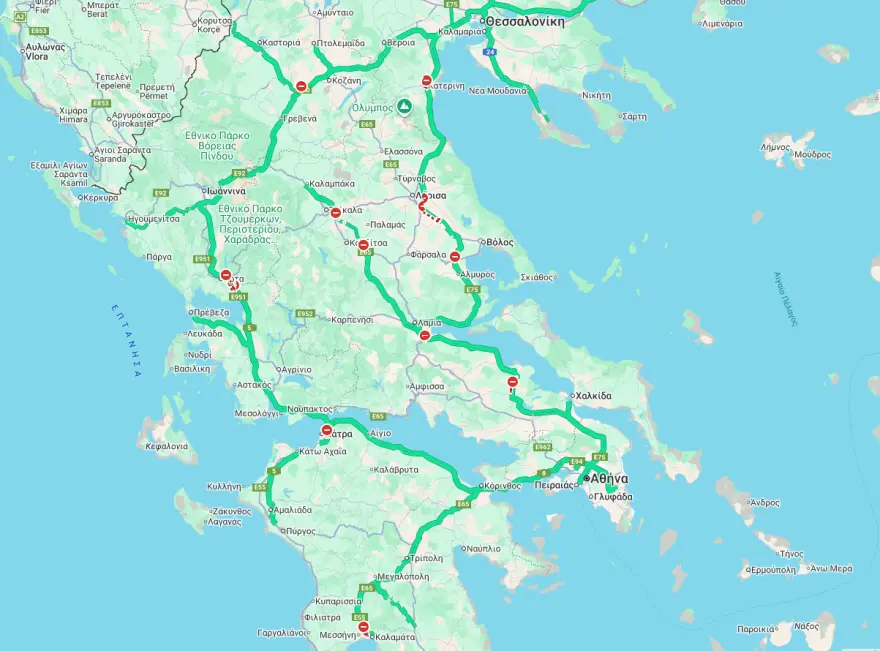 Smaller detours are in place in Pieria, Nea Anchialos, and Bralos. The Malgara tolls remain open.