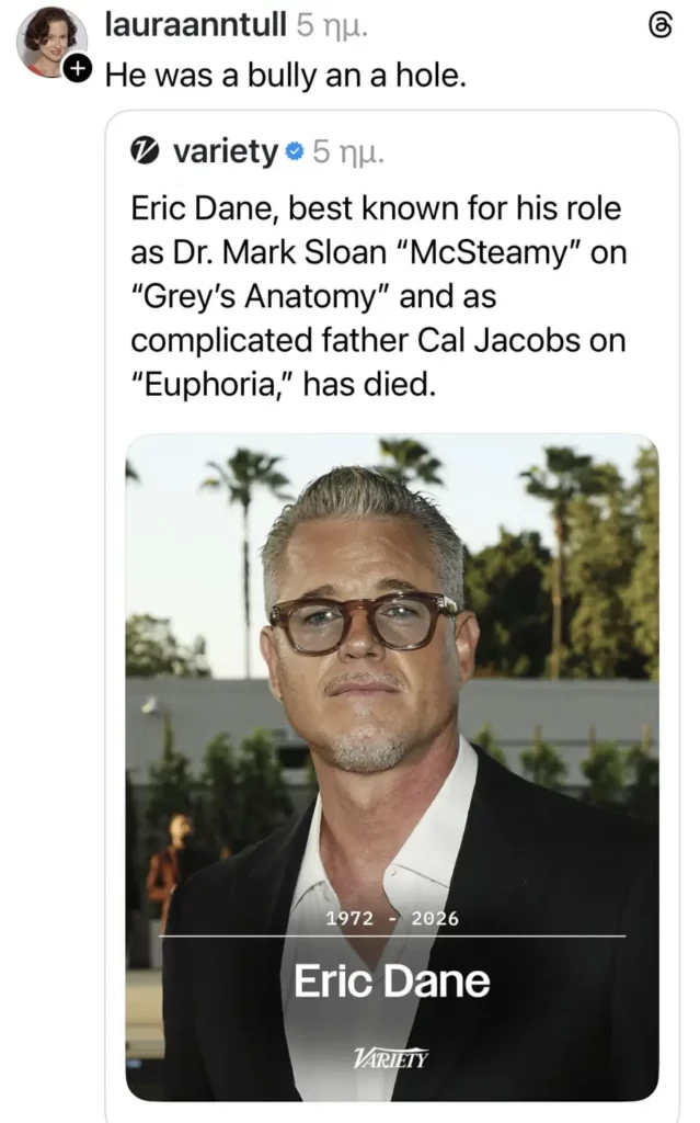 A wave of criticism has followed the stance taken by Laura Ann Tull, who publicly attacked Eric Dane just days after his death. Many social media users have accused her of disrespect and a lack of empathy.