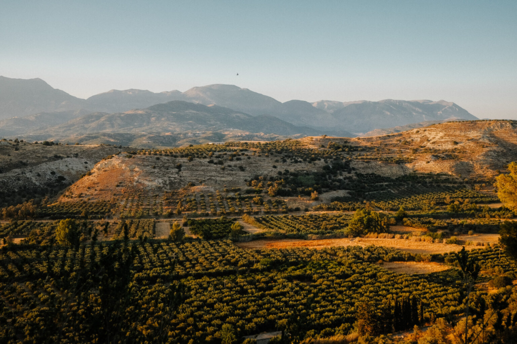 In the vast plains of Mesara, bounded by Mount Psiloritis to the north and the Asterousia Mountains to the south, as well as the plains of Heraklion and Kastelli, endless olive groves and vineyards flourish. Citrus fruits, a wide variety of field and greenhouse vegetables supplying all of Greece year-round, and cereals are also cultivated. PDO (Protected Designation of Origin) zones for olive oil, wine, and raisins dominate, while exotic crops in the south, such as avocados and bananas, are increasingly established. The region’s microclimate—shaped by the constant interplay between mountains and sea—creates a unique biodiversity ideal for the growth of wild aromatic herbs, some of which exist only on Crete.