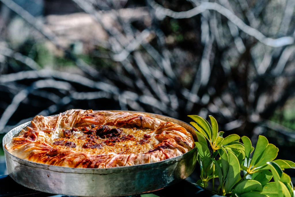 • Sarikopites – Fried, braided pies with eggplant, potatoes, tomato sauce, and a mix of cheeses, often drizzled with honey.