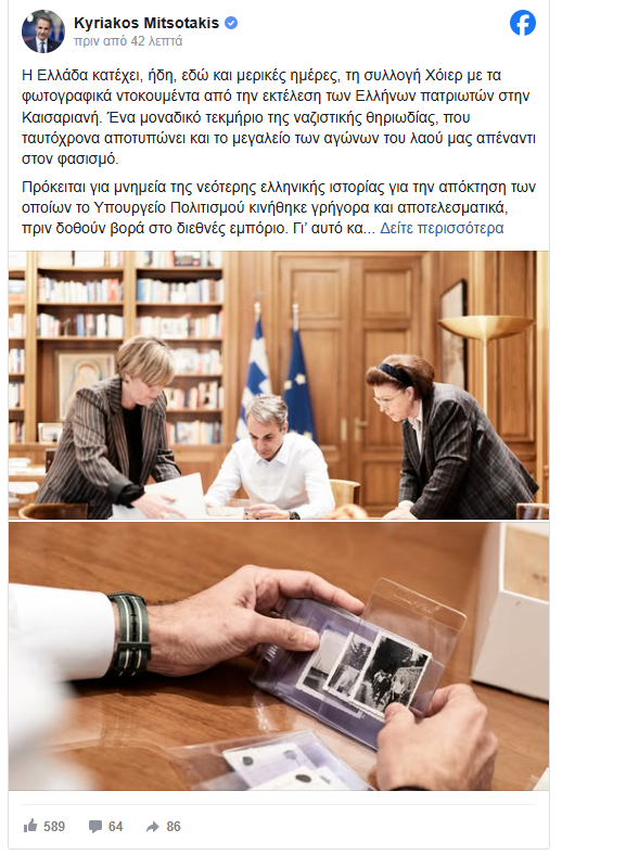 Prime Minister Kyriakos Mitsotakis personally viewed the collection, describing it as a unique testament to Nazi brutality, while also capturing the courage and resilience of the Greek people in their fight against fascism.