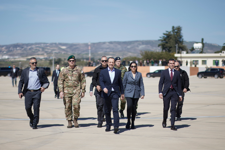 The President of Cyprus, Nikos Christodoulides, arrived on the landing strip shortly before 12:40.