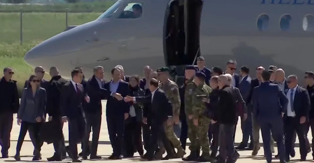 At the “Andreas Papandreou” base, where the meeting is taking place, Greek F-16s—sent to Cyprus by decision of the KYSEA—have also been deployed. According to the schedule, the three leaders will hold an extensive discussion, followed by joint statements.