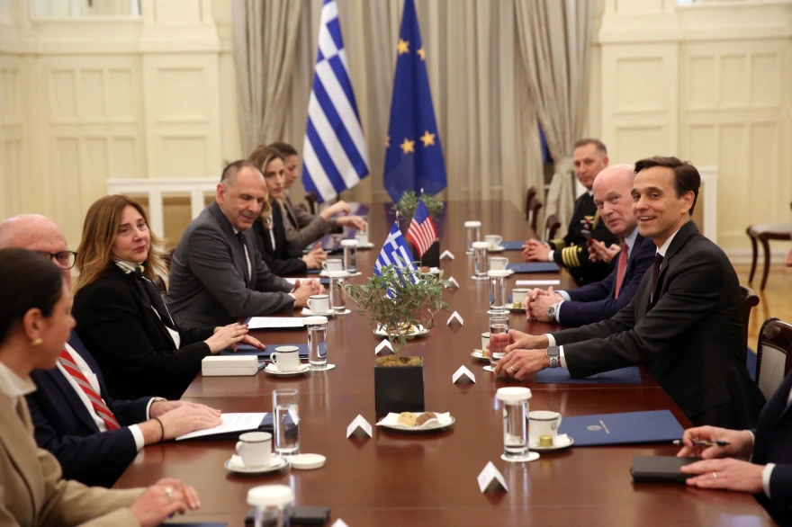 Foreign Minister Giorgos Gerapetritis met tonight at the Ministry of Foreign Affairs with the U.S. Permanent Representative to NATO, Ambassador Matthew Whitaker. U.S. Ambassador to Greece Kimberly Guilfoyle also took part in the meeting.