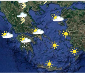 In Attica, clear weather is expected. Winds will blow from southern directions and will reach 3 Beaufort. The temperature will range from 13 to 23 degrees. On the contrary, in Thessaloniki, showers and thunderstorms are forecast for the next few hours. Winds will blow in Thermaikos up to 5 Beaufort, and the temperature will range from 10 to 22 degrees.