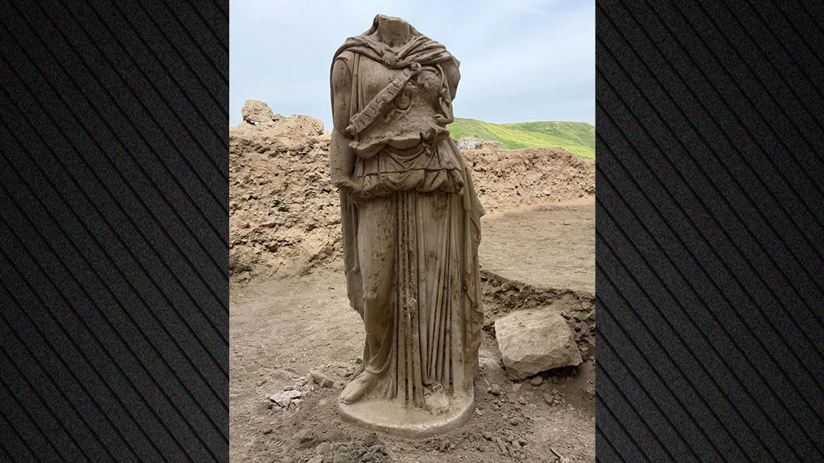 An impressive discovery was made by archaeologists in the ancient city of Laodicea, in Denizli, Turkey, as they uncovered a headless marble statue of the goddess Athena, approximately two meters tall.