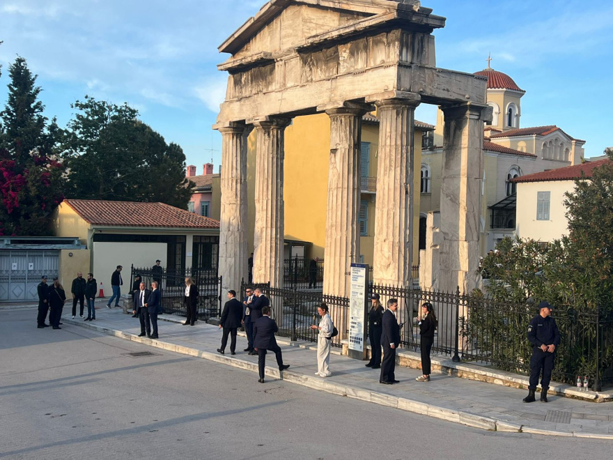 - As part of his visit to Athens, Emmanuel Macron is holding talks with Kyriakos Mitsotakis at the Roman Agora, focusing on the EU’s role today.