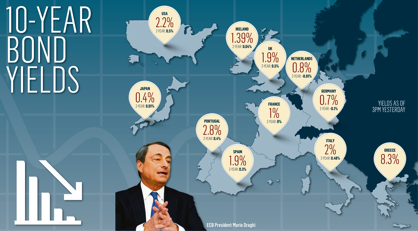Here's a map that simplifies the bad state of affairs as far as 10-year bonds are concerned