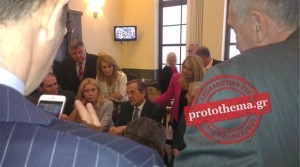 Mr. Samaras discussed with New Democracy's members at the cafeteria of the Parliament