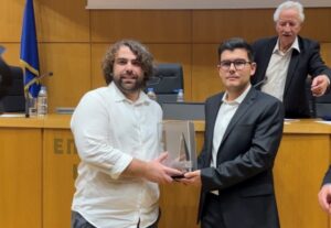 The “Miltiadis Karatzis” Award was presented to researcher Dimitrios I. Zaridis at a special event organised by the Friends of FORTH Association, held at the “Kastellaki” Hall of the Heraklion Chamber of Commerce
