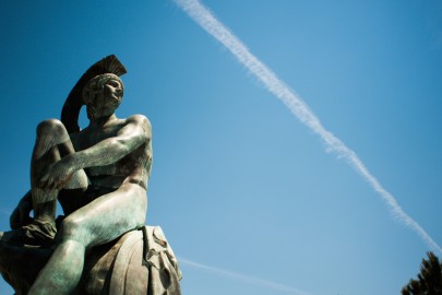 The statue of Theseus at the square infront of Thisseion Metro in the region that bears his name. Theseus is the mythical founder-king of Athens. Like Hercules, he battled and overcame many foes including the legendary Minotaur (half man, half bull) of Crete.