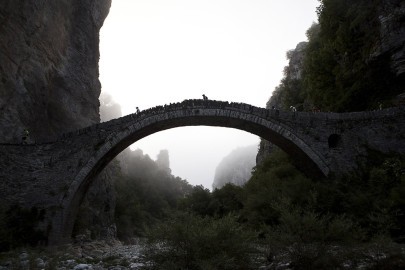 The people running over Kokkori bridge at Zagori mountain are just some of the 1,300 Greek and European athletes that participated in the North Face Zagori Mountain Running 2014 event. They ran through picturesque and challenging landscapes of the region. The event was held for the fourth consecutive year from July 26-27. Runners crossed the Vikou-Aoou National Park and had the opportunity to see the impressive deep Vikos Goge along the Timfi mountain as well as the villages known as Zagorohoria – a network of 46 villages spread all over the mountains on the north east of the city of Ioannina.