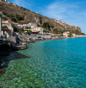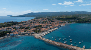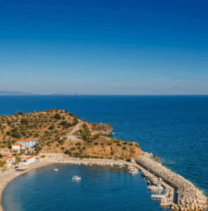 Fishing boats and yachts, traditional Mani cuisine, fresh fish, gourmet touches, boutique hotels, and stone buildings by the sea. Clear green-blue waters bathed in sunlight. A rare mix of authenticity and modern tourism. From above, it resembles a Sicilian village — fitting, as it shares Sicily’s latitude. The sea and the pink sunrise over Cape Grosso’s cliffs are unforgettable.