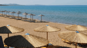 Very large and sandy, with pristine waters lapping the Ionian Sea. It’s organized in parts and separated into smaller beaches by peninsulas. Loggerhead sea turtles (Caretta caretta) come ashore here to lay eggs. Nearby is the famous Costa Navarino resort, and its Dunes Beach has earned a Blue Flag.