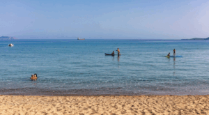 Ritsa is a long pebble beach with deep blue waters and views of Mount Taygetos — a favorite of locals. Partially organized, with tamarisks and olive trees for shade. Canoes and pedal boats for rent, tavernas, easy parking. Bring a mask to explore the seabed. Across from Kardamyli lies the forested island Meropi, uninhabited and…swimmable.
