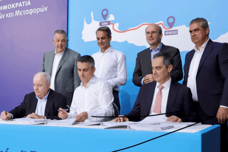 The signing ceremony with the GEK TERNA - The new road axis will also have accompanying side roads, bridges, tunnels, junctions and upgrades of the bypasses for Chania, Rethymno & Heraklion