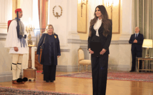 Today at noon she will present, third in a row, her credentials to the President, after the new Ambassadors of the Kingdom of Norway Harriet Berg and Canada Sonya Thissen - Meetings with George Gerapetritis and Kyriakos Mitsotakis will follow