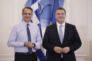 Prime Minister Kyriakos Mitsotakis met with European Commissioner for Sustainable Transport and Tourism Apostolos Tzitzikostas at the Maximos Mansion. The discussions focused on key topics related to the Commissioner’s portfolio